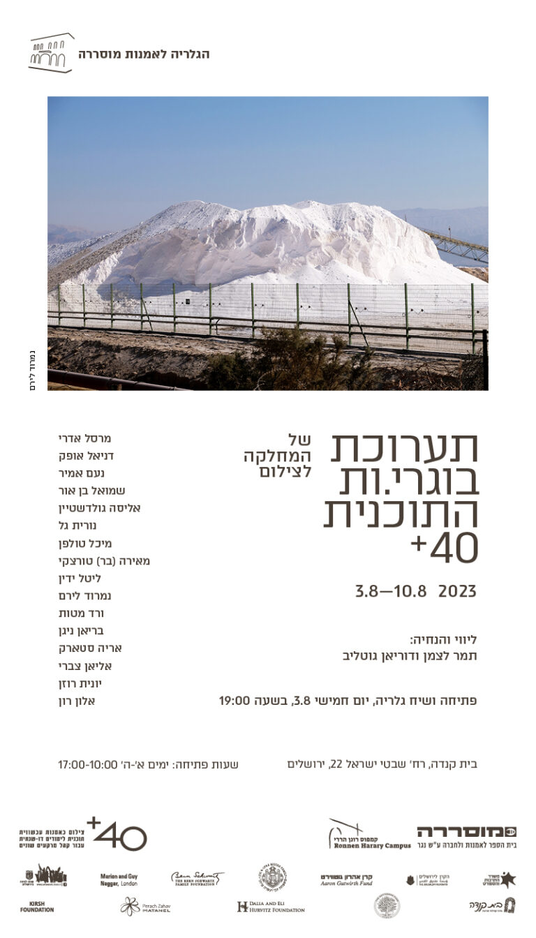 תכנית הלימודים הדו שנתית ארבעים פלוס, מלמדת צילום כאמנות עכשווית, ומיועדת לקהל מרקעים שונים. התערוכה של 16 בוגרי ובוגרות התוכנית לשנת 2023, משקפת את הישגיהם ואת התהליך הלימודי, הטכני והרעיוני, אותו עברו הסטודנטיות.ים במהלך שנתיים ושלוש שנות לימודים.
